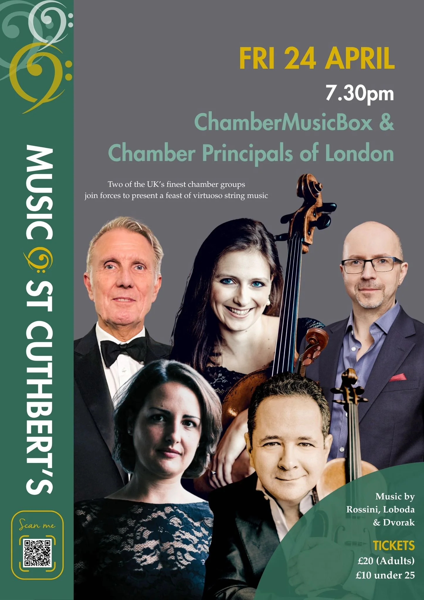 Chamber Principals of London unites leading principals from London’s foremost orchestras and professors from top conservatoires in a dynamic ensemble renowned for its artistry and versatility. More than colleagues, they are long-time collaborators and friends, united by a shared artistic vision and a belief that chamber music is a conversation—one that invites the listener in. Praised for their debut at the Teatro Verdi di Salerno, they perform across classical and contemporary repertoire in formations of every size, delivering music of the highest artistry in settings both grand and intimate.